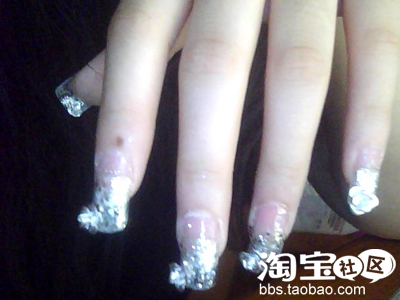 下面呢,又得用到胶水咯。,这次是粘银色小花的。因为小花比较大,用指甲油的话,粘不住哦