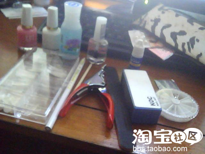 这些有的没得的,是今天美甲的用品,粉色和白色指甲油暂时用不上,