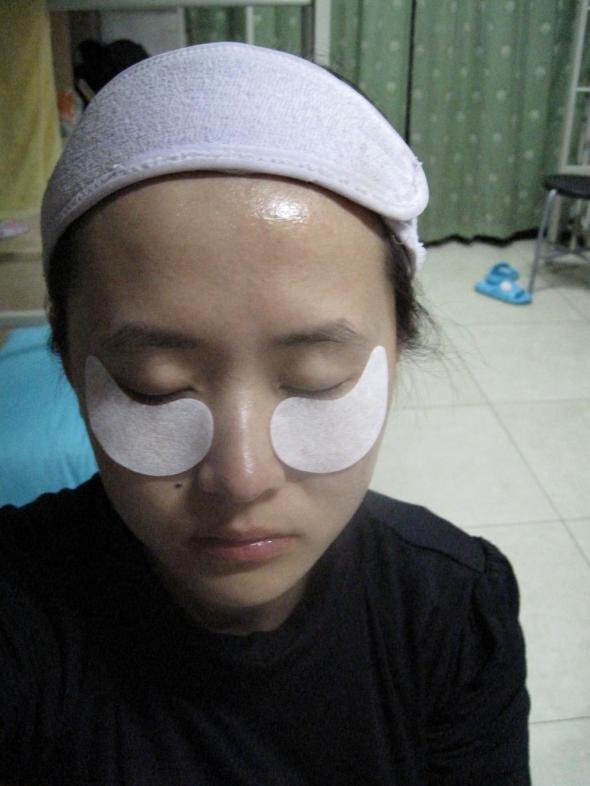 刚洗了个脸,拍了化妆水,然后要敷眼膜喽