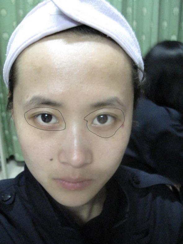 用笔画的地方能清楚的看到黑眼圈,还有眼袋