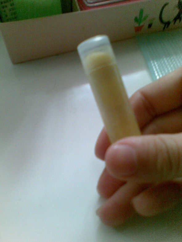最后再擦上一点润唇膏,这是我自己做的蜂蜜橄榄油唇膏,不仅天然而且还很保湿呢,大家也可以试试哦!