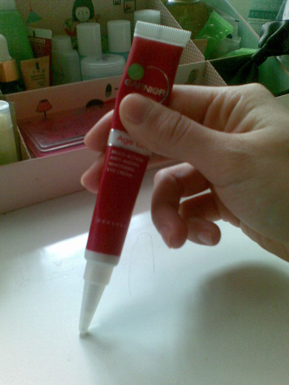 然后就是用眼霜啦,我已经25岁了,所以要注意开始初期抗皱了哦,现在用的是卡尼尔岁月修护眼霜。