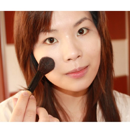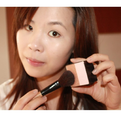 用阴影粉时,可以用大号的眼影刷或手指涂抹在所需的位置,需要缩小或凹下去的地方,如腮部及面颊,鼻侧两边等处.按照阴影图使用。