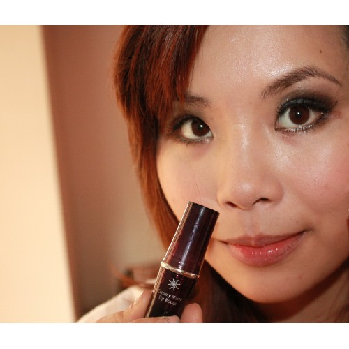 先用浅色唇膏打底,再用露华浓的唇彩薄薄的涂上一层。