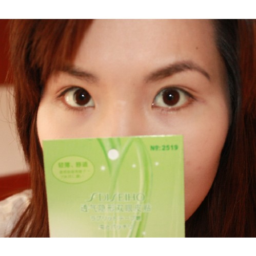 眼皮不明显或一单一双可以用胶纸修饰哦,看看我上面我贴后的效果.