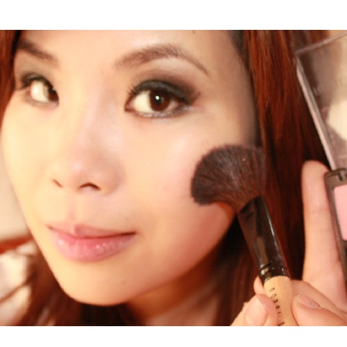 散粉:用大号眼影刷蘸取上一点散粉,柔和眼影,使眼影的色彩之间没有明显界线,散粉也可使明暗对比柔和,减弱色彩的反差。
