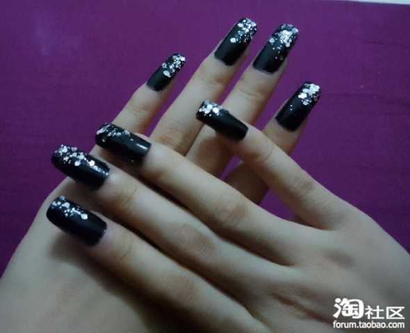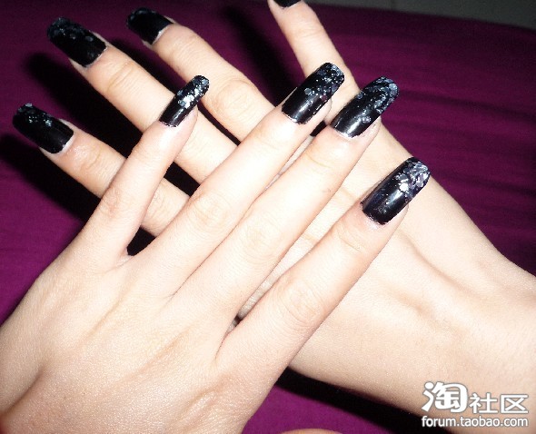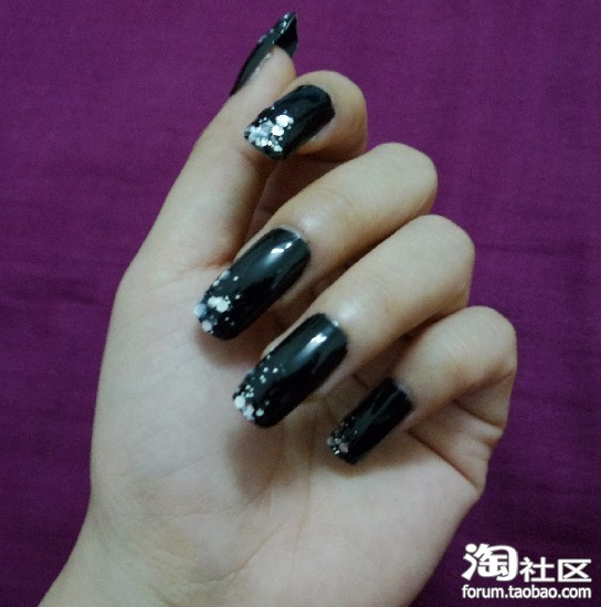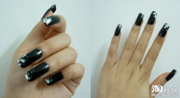 超详细美甲贴片教程【性感黑色亮钻】
