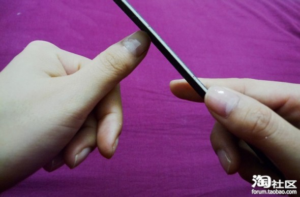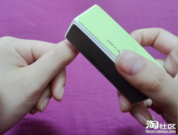 接着用抛光器最细的那一面将指甲抛光