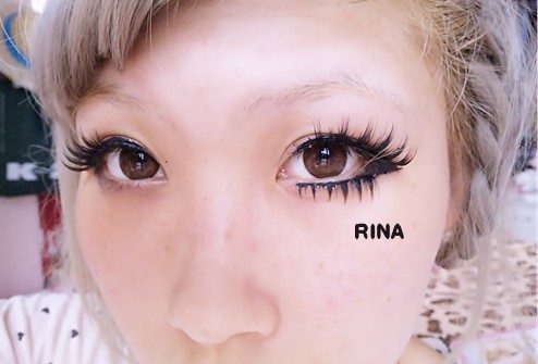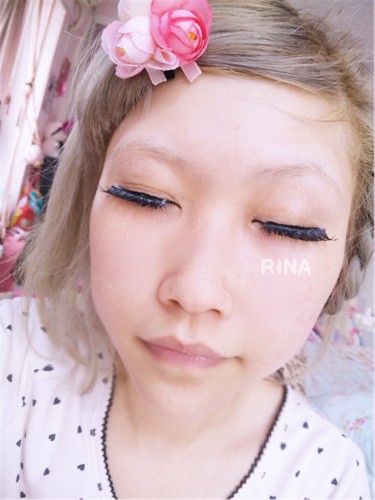上睫毛我习惯先贴好尾部 然后再慢慢推上去 把中间和前面也固定好。