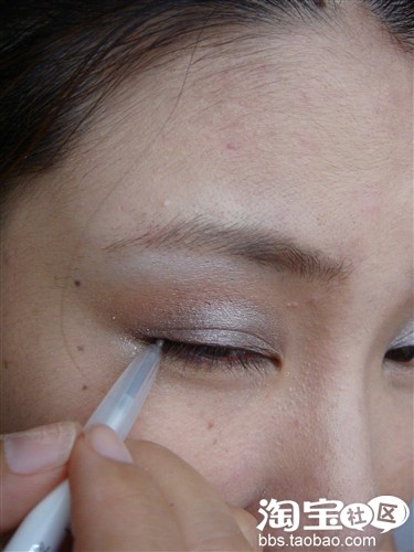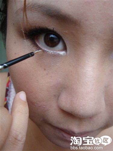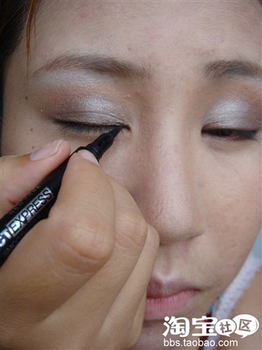 再刷一遍睫毛,然后在眼头涂上闪亮眼线液,是眼睛更加闪亮哦