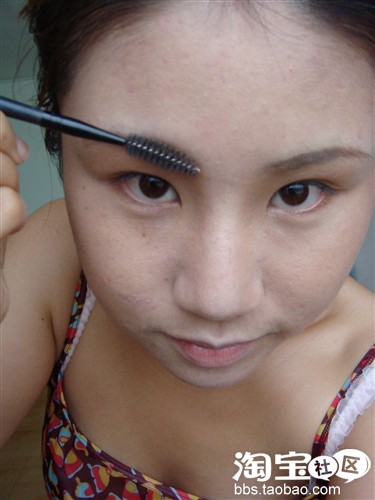 用眉刷将眉毛梳顺 也把眉粉晕开 防止眉毛太厚重