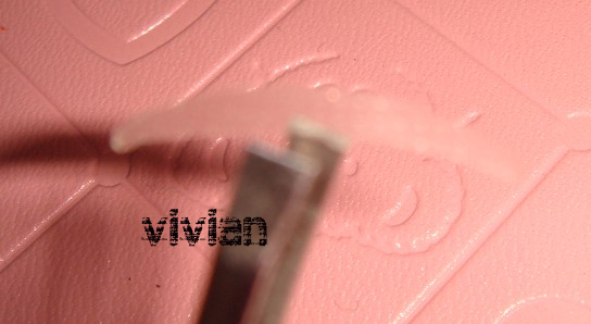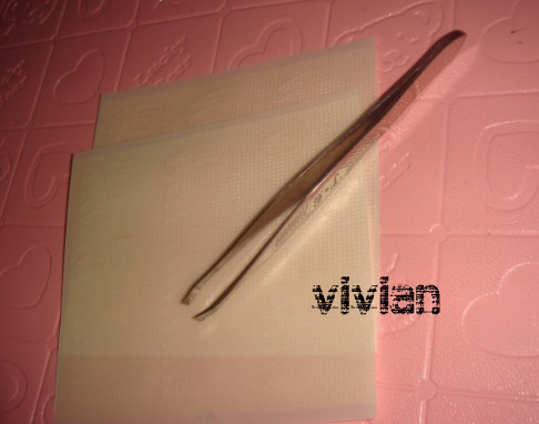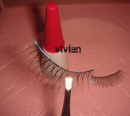 自己沾睫毛可以借助小镊子,先把中间固定好,黏住后,再沾两边并且调整位置。