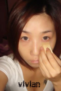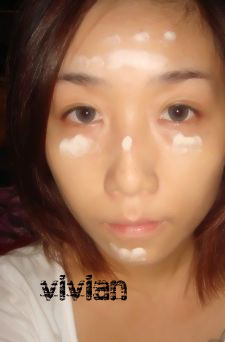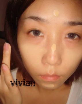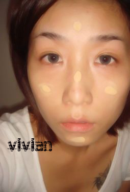 就是选择比你肤色浅一号的颜色,涂在这五个部位.亚洲人的面部都是比较平面的,so要记得用高光提亮喔