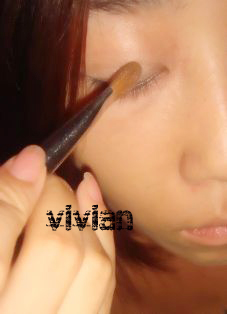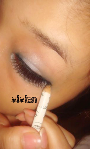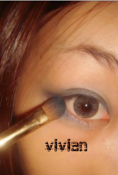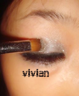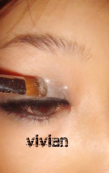 先用白色眼影打底 嘻嘻也可以用手指哦