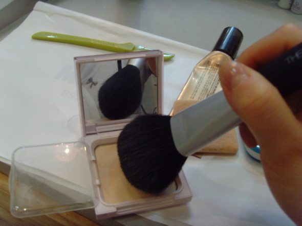 我比较喜欢用粉刷来用,因为比起粉扑更加涂得均匀,而且夏天不会让肌肤感觉那么厚重,还是建议粉刷