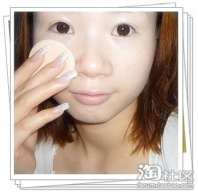 操作:用粉扑轻压脸部