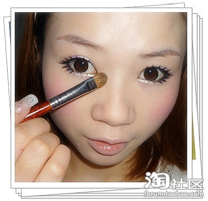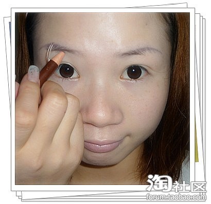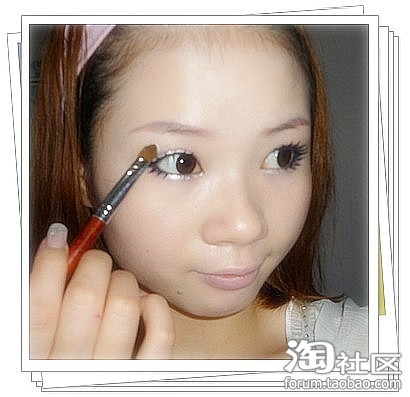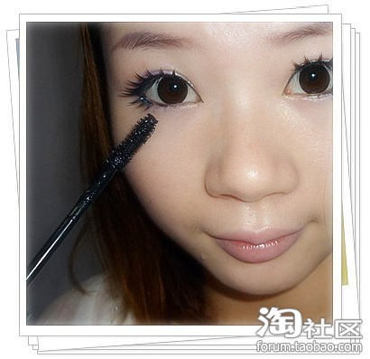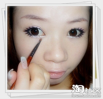 操作:均匀涂在睫毛跟部,眼尾上扬.眼头勾出眼角,下眼线从眼头3分之2处延伸至眼尾与上眼线融合