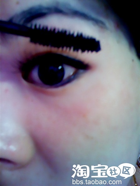 第五步:给假眼睫毛也涂下睫毛膏。
