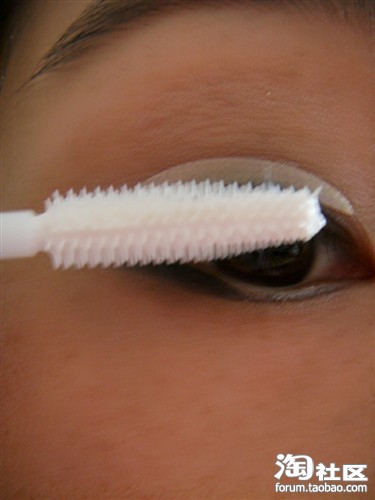 再涂睫毛膏。(先涂成睫毛纤维,在涂睫毛膏,睫毛会更长,更浓密)别忘了下睫毛也要涂哦!