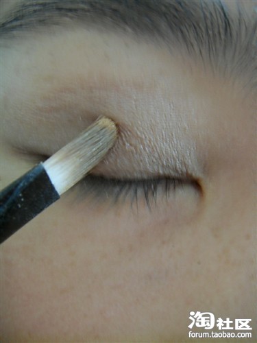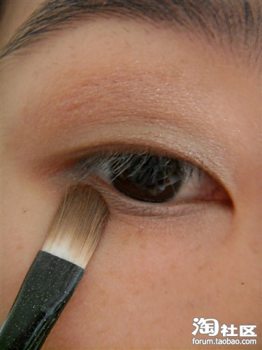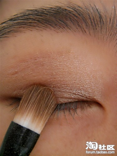这颜色,(我也不知道是什么颜色。用深棕色眼影也可以的)涂双眼皮皱褶处