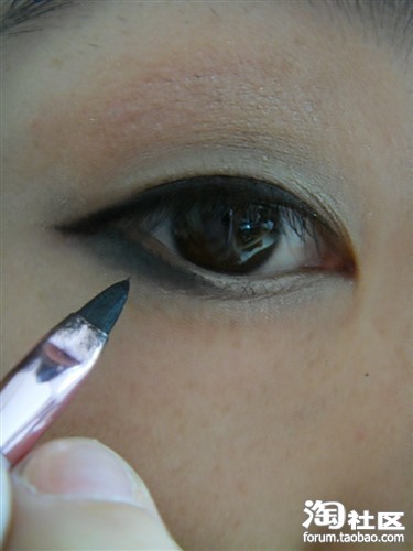 上眼睑化好后,下眼睑也要描画哦,要成三角型化哦,只化眼尾到眼头三分之二的位置差不多。