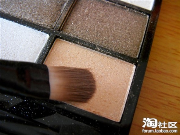 先用这浅棕色打底。眼窝部门都要上到眼影哦