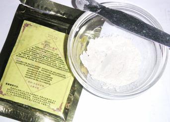研究了下,是纯正的中药粉是通过打磨而成的哦~很细腻的粉哦~