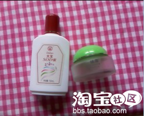 猫密用的都是很很很小牌平价的护肤品。因为皮肤以前很没水份,因此着重保湿。绿色盖子的是佳雪的芦荟保湿霜,我选择的是高度保湿。神了哟,这个绝对是可以解决皮肤脱皮问题的,猫密以前的皮肤总是缺水到翘皮,很尴尬的。抱着试试的心态用之后翘皮不见影咯。去年一整个冬天皮肤的营养就靠它哟,用了好多罐,这个有中度保湿和高度保湿,根据自己的皮肤状况选择合适的。左边的没有不知道的吧。没错就是再平民不过的大宝SOD密。现在我每天都是用这个哟。很好吸收。也不用担心任何副作用。便宜得紧呀/