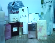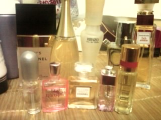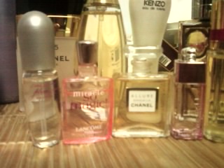 第二排从左到右分别是香奈儿的5号,迪奥的真我香水KENZO,DECLEOR,ELizabeth arden的5th avenue