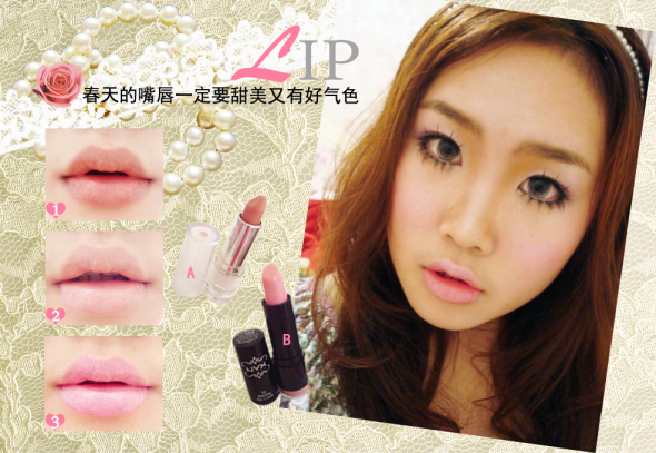 3. 涂抹粉色唇膏 最好是用唇刷 要均匀哟