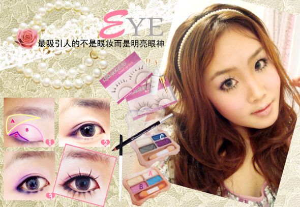 眼 妆使用粉紫色系眼影和加藤式精致放射状下睫毛