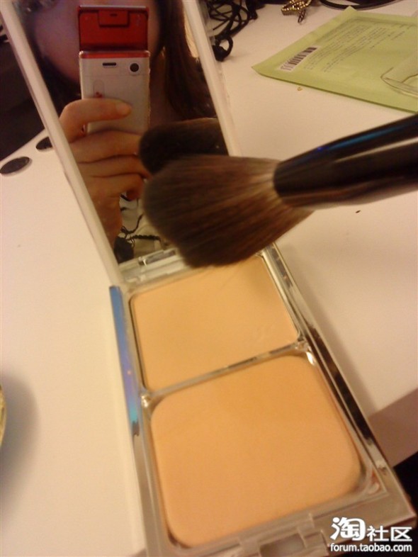 为了使妆容看上去更自然,我用卡芙兰的粉饼,稍微的刷了一遍,这步,可做可不做,看心情吧,呵呵!