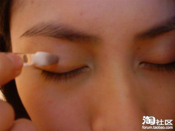 我们用眼影棒把黑色的眼线漫漫的匀开看上去就变眼影,这样看上去不会那么的不自然了,