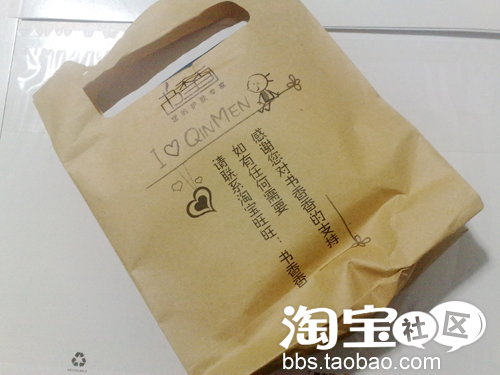 打开以后,装面膜的一个小纸袋子,上面还有联系方式呢。环保哈