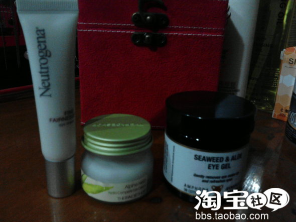 第3瓶是淘宝上淘的昨天刚收到的英国AA网 芦荟海藻眼胶,『适合任何肌肤,也包括敏感肤质,尤其适合日晒后使用,其中的海藻萃取精华成分能镇定冷却肌肤温度。』这是介绍说的,所以效果期待ing。。。。