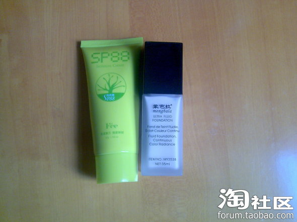 这个是隔离霜。。。凡茜的。。这个是第三瓶。。也是贪图它有隔离电脑辐射的。。这个用用还是不错的。。。不过实话说。。电脑上久了。还是会油的。。它还能遮瑕毛孔。。。而且不堵毛孔。。主要是用洗面奶就洗干净了。。所以个人觉得它还是性价比高的产品。。另外一个是蒙巴拉的隔离霜。。我出门用用的。。效果还可以。。用的比较少。。还有一个是韩露饰的隔离霜。。因为刚刚被同事拿去试用了。。就没拍到了。。那个一直是我和室友的最爱。。我个人比较白啦。。涂韩露饰的BB霜。。不会太白。。但是能遮瑕痘痕。。。不过持久性不是很好。。。一般到伴晚就效果就不好了