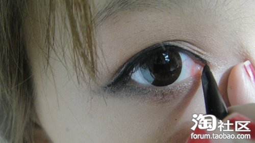 上眼皮的眼线一定要沿着睫毛根部涂画 不要留白(经常看见有人化会留条白线..)