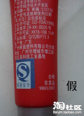 5.印刷质量:假货的印刷质量怎么也比不上真货的,多少会出点瑕疵的。如果您买10支假货,可能就会有一支印刷不好的(也不是绝对的),想下面图上的 S 标志的边框就印歪了!