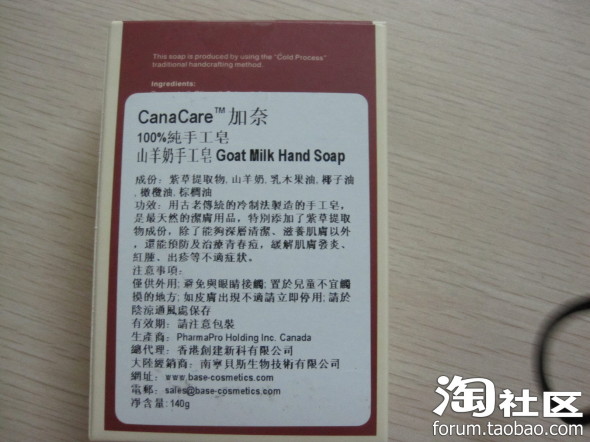 首先将手洗干净先,(个人爱好,先洗手在卸脸妆,有的MM不洗直接卸也可以哦)哈哈,这个是本人的茉莉手工皂,也是CanaCare加奈的,140G,喔喔~~好大一块,纯植物精油制作的,自己用了都快1个月多了,还有那么大~效果好的不得了~咔咔~上张手工皂的照片(盒子是山羊奶手工皂的,呵呵~茉莉手工皂的盒子我用了交给垃圾桶了)
