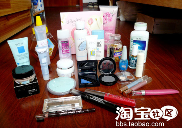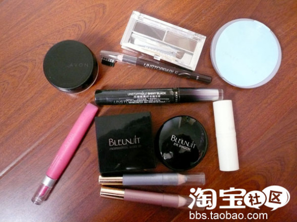 这是别样红的彩妆啦,BB霜、粉底、粉饼、眼线粉、眼影粉、眼影笔、眉笔、眉粉、唇彩,哦还有指甲油。