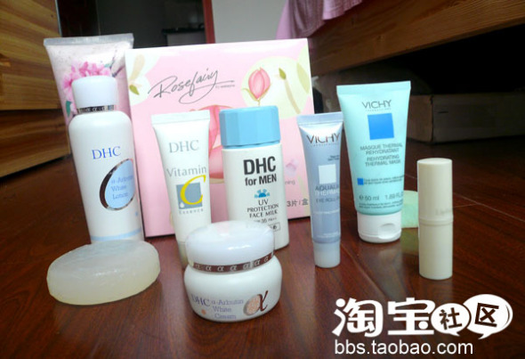 这是我基本护理的所有宝贝,洁面皂、爽肤水、眼霜、滋养霜、面膜都有了,还有我最爱的润唇膏,我的最爱哦,很好用的,最不很干的时候很滋润又不油腻的。