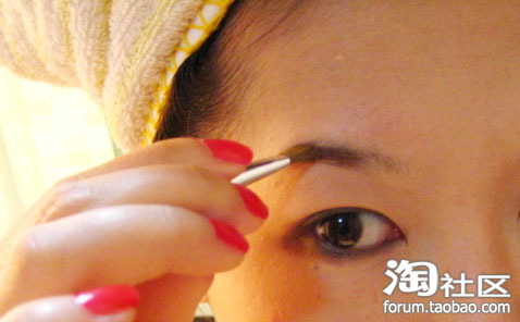眉毛要从半截画,画完后面再清扫一下眼头,(这里我用眉粉