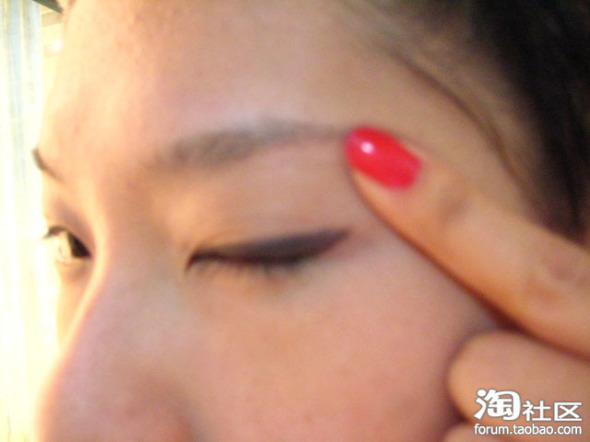 有点不清楚不过大致画眼线的时候拉一下眼角,超容易画好