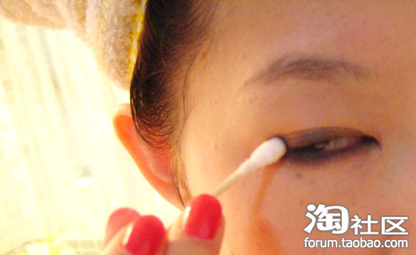 对拉。。就是棉棒哦上下把黑色眼线边边轻轻晕染一下