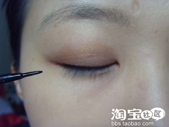 涂完眼影,下一步就是化眼线液了。