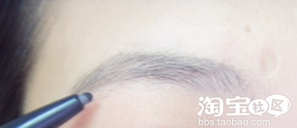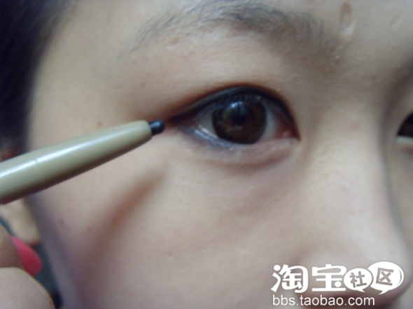 再用黑豆眼线笔化眼角,这样眼睛会看起来大一些。