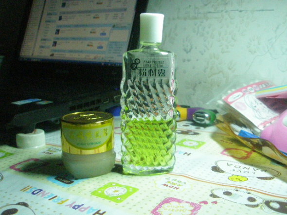 这两个小东西是我的必备呢,呵呵,春娟黄芪霜和安安粉刺露,以前纠缠我的痘痘被他俩战胜了,现在放着,偶尔冒一两颗,抹一点非常好。