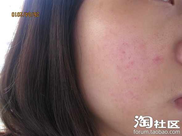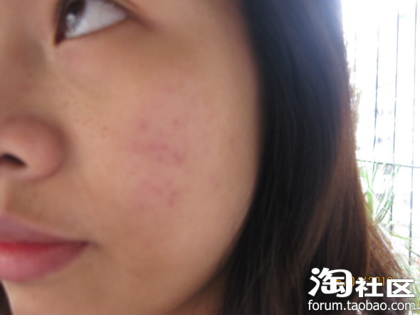 4月26号拍的相片,也用了有半年的时间了,虽然还有一点红印,但比之前好了很多,平常化了妆只见一点点印,之前化妆都盖不住痘印,毛孔比以前粗了好多,可能之前挤的原故,想方法再把毛孔缩小.