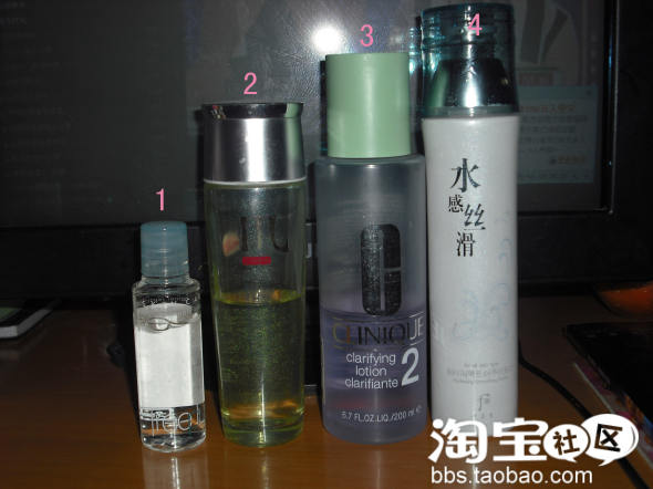 3.倩碧2号水 总的来说,是不错的东东,就是酒精味道重了点,但是现在我也习惯了~~用之后,脸上凉凉的,很舒服,不过我始终没在脸上擦出像别的美眉说的黄黄的东西来,不过脖子上能擦出,呵呵,可能是我的脖子太黑了~~希望可以擦白点,嘿嘿,又在妄想了~~~~