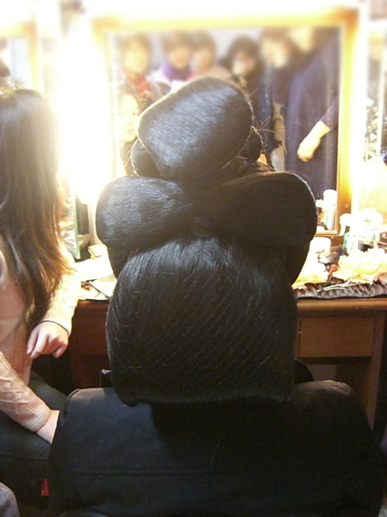 这个是后面哦,大大的假发发垫, 就算是长头发的妞妞 也是要用的哦 因为古代女子头发都是又高又厚的